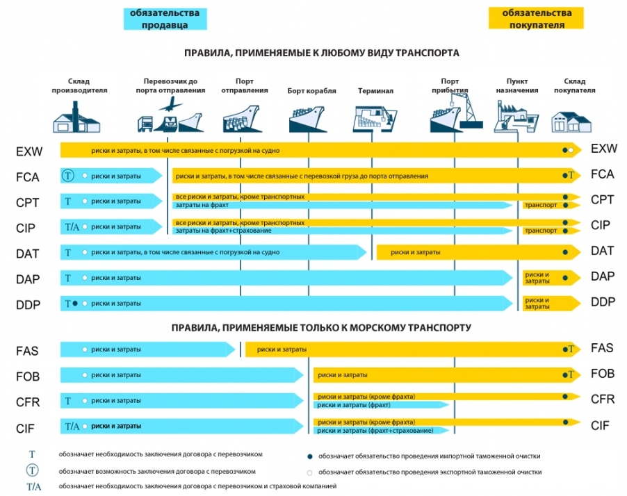 Incoterms terms are three-letter abbreviations. The first letter indicates the moment of transfer of obligations for the goods from the seller to the buyer.
